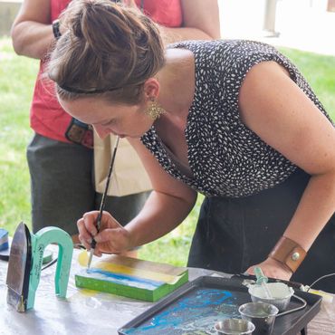 I began teaching encaustic workshops in 2019 and opened Buzz in Art Studios in rural Arnott, Wisconsin, in 2022. Each month, I host small-group encaustic workshops, private lessons, and custom sessions - sharing this ancient and luminous medium with curious creatives of all backgrounds.